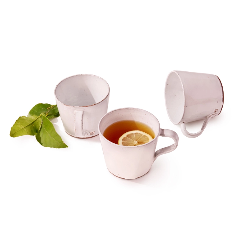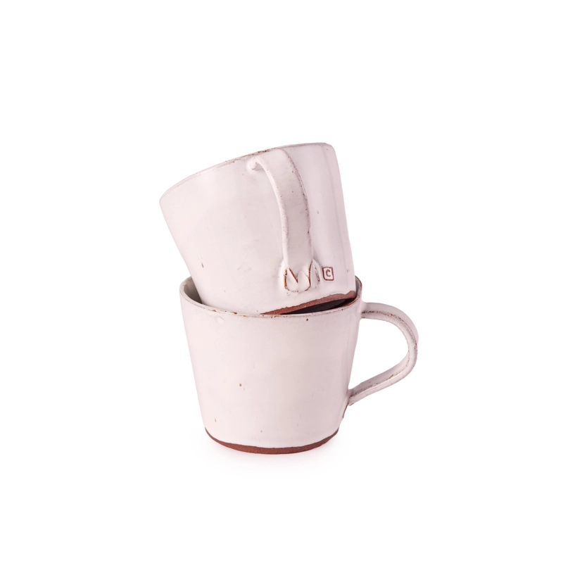 Crafted for Perfect Hideaways, these mugs are individually shaped using a custom blend of clay and glazed by hand in Corinne de Haas signature speckled white glaze, ensuring each one is truly unique.