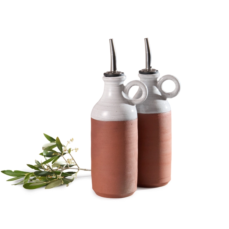 Because pouring should feel poetic… A curvaceous yet functional olive or vinegar pourer with a stainless-steel spout, the Country Oil Pourer’s signature white glaze contrasts beautifully with the more rustic clay base.